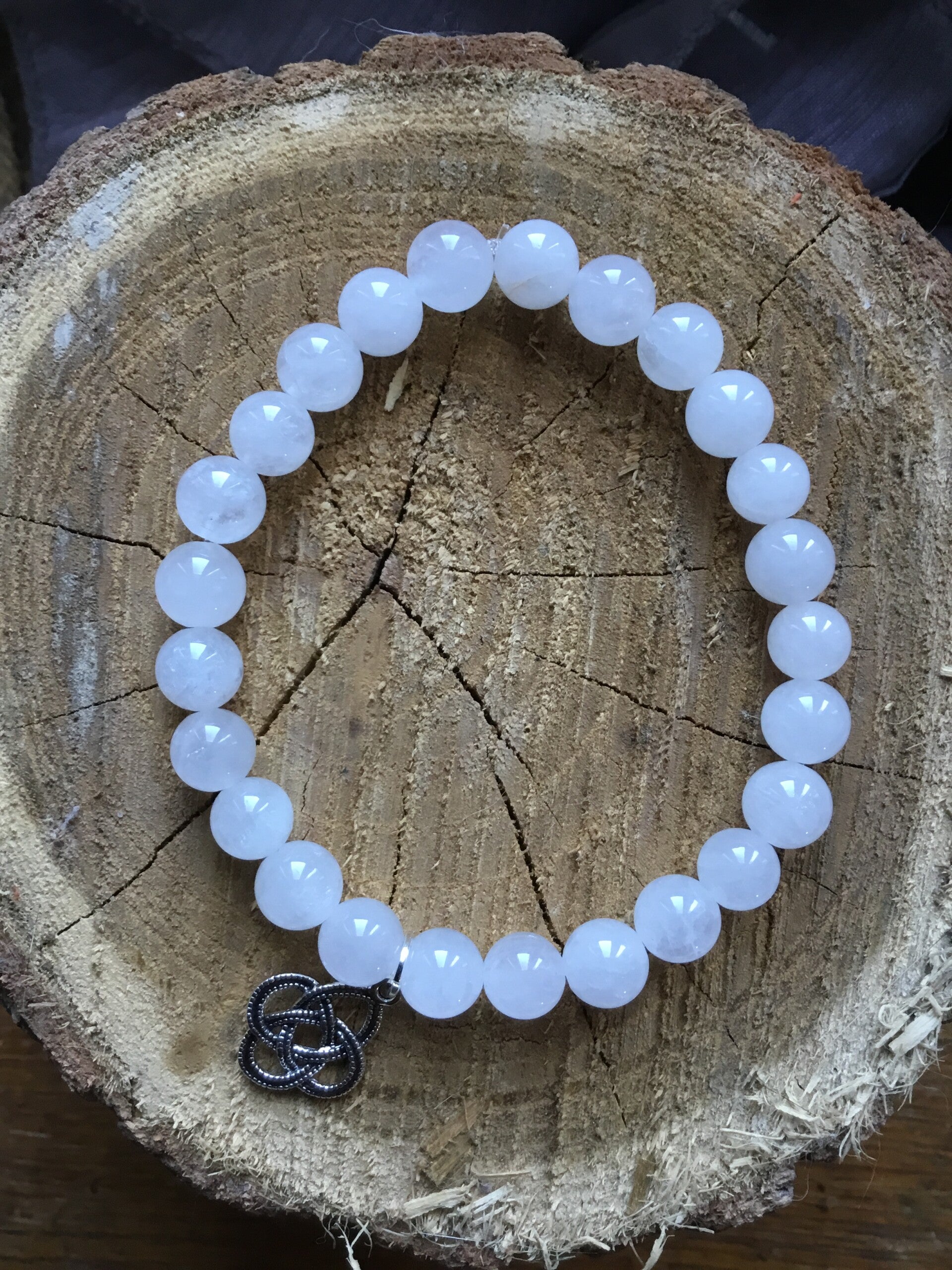 Bracelet boule cristal de roche avec une breloque au motif celte