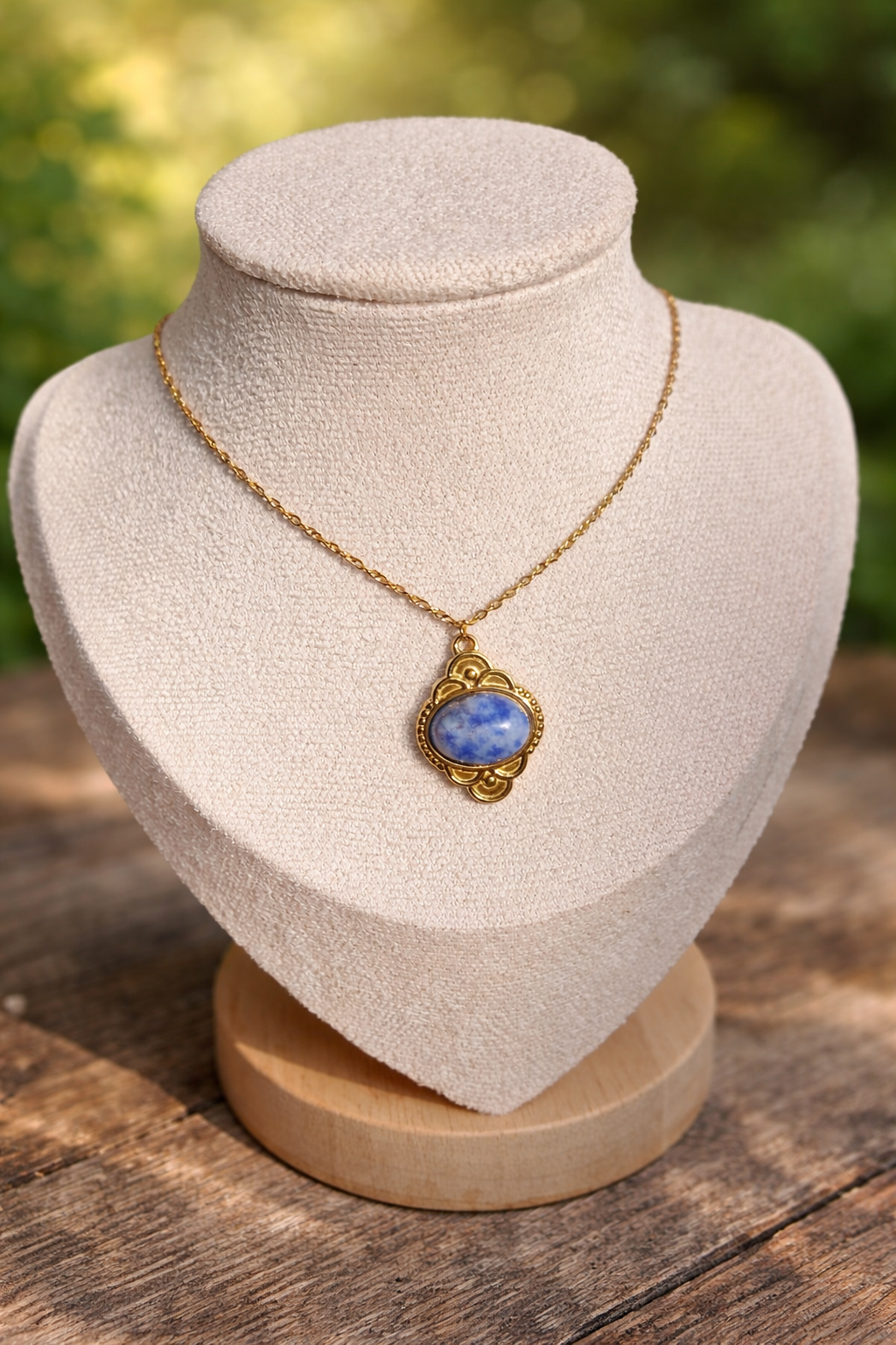 Collier chaîne avec pendentif en sodalite bleue naturelle